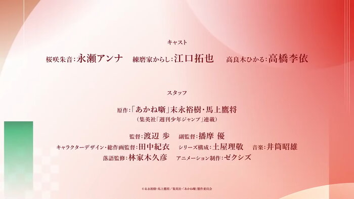 Submitted by mantal on 2 months 1 week ago Anime/Drama 2 Akane-Banashi got an animme will start broadcasting in 2026. Akane-Banashi 2026 Complain Log in or register to post comments Reference Info Akane-Banashi Manga