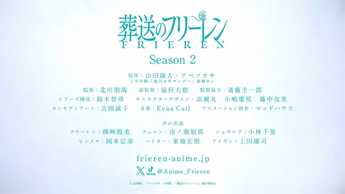Submitted by Rust on 3 months 1 week ago Anime/Drama 3 The second season of the anime 'Sousou no Frieren' 's PV trail screenshots:~ Sousou no Frieren second season Complain Log in or register to post comments Comment ( 1 ) Sort by Oldest firstNewest firstHotest first jeclak 3 months 1 week ago A group photo of Kiyomi Chihiro and the Furilian doll: "Thank you all for attending the Furilian special event at AnimeExpo! The PV for the second season has also been released. Please look forward to its airing next year!" 0 Reply Complain